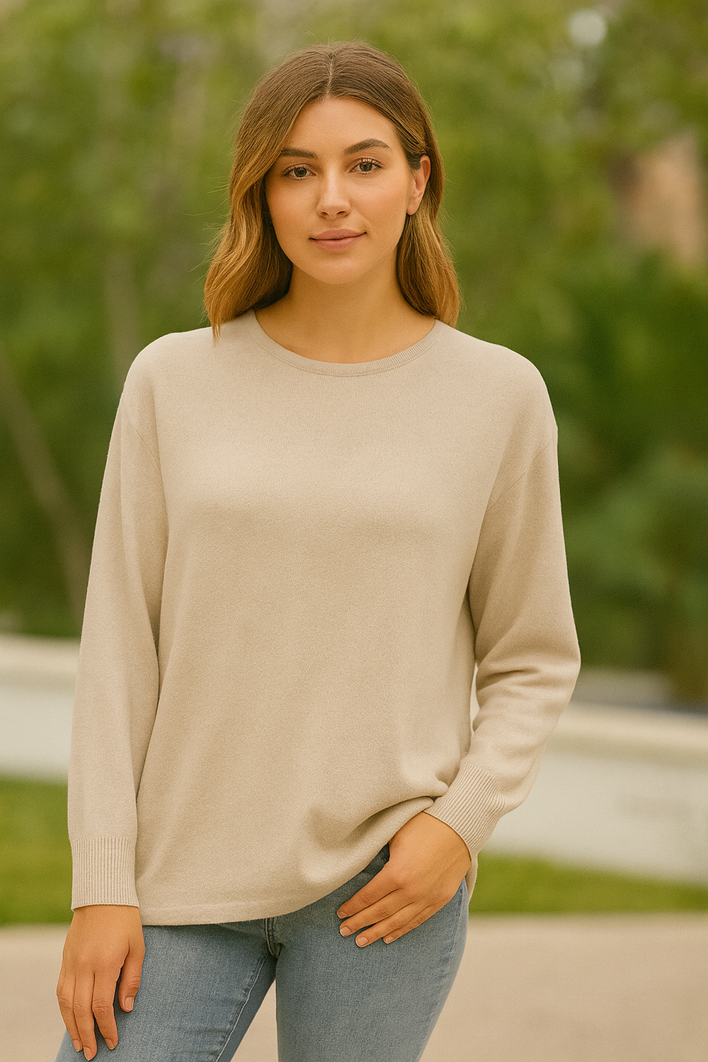 SOFT KNIT BASIC JUMPER WITH BUTTONS ALONG THE CENTRE BACK Cream